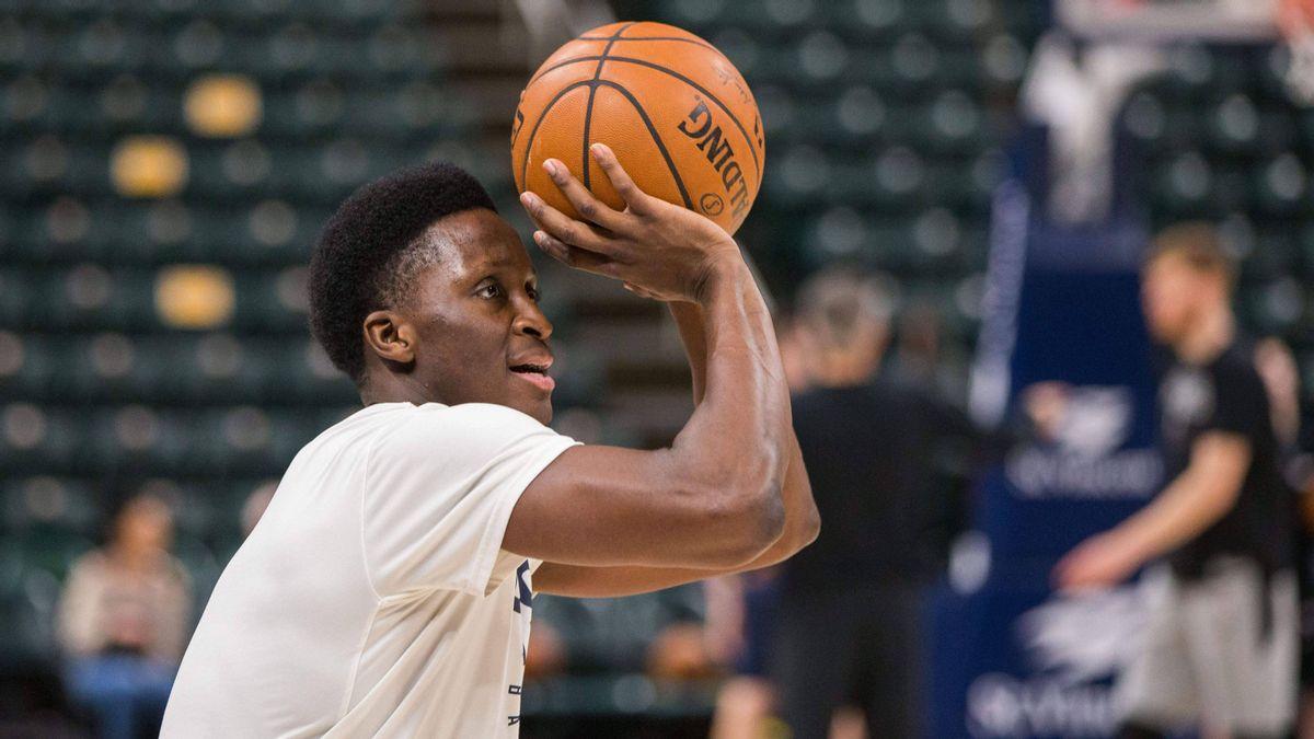 时间回溯至2017-18赛季,失去保罗·乔治的步行者从雷霆交易得到奥拉迪波。在不被看好的情况下,这位25岁后卫迎来爆发:场均23.1分5.2篮板4.3助攻2.4抢断的全面数据,带领球队取得48胜34负的佳绩。该赛季他包揽最快进步球员奖、抢断王,并入选最佳三阵、最佳防守一阵和全明星阵容。