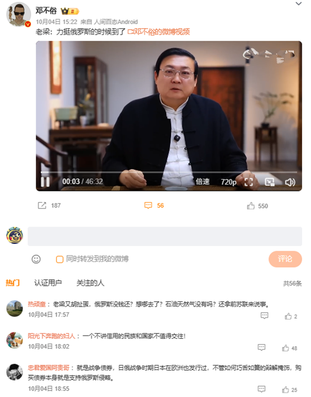 而且,最近这几天,梁宏达的一段视频在互联网上引发了不小的争论,视频内容正是关于支持俄罗斯的时刻到了,因为熊猫债券的事情,梁宏达在视频中进行了详细的分析。