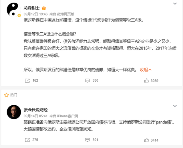 "俄罗斯即将在中国发行熊猫债!"自九月中旬以来,这一消息在金融圈和网络社群中引发了广泛关注和热烈讨论。部分网友对此表示热烈支持,认为这是中俄友谊进一步深化的金融体现;然而,也有另一部分网友翻出俄罗斯过往的债券违约记录,警告这可能是一场高风险的"金融豪赌"。