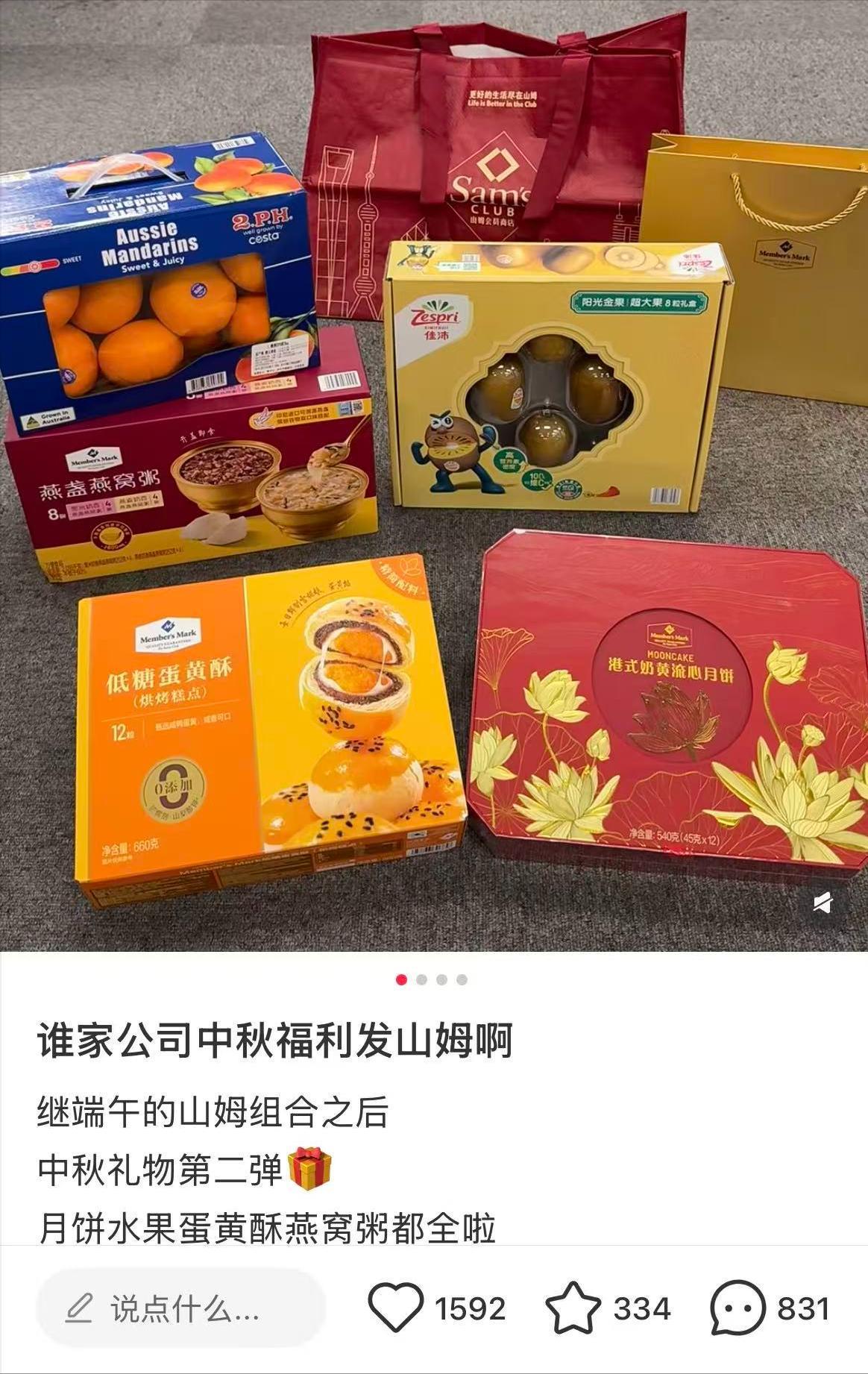 大公司的员工提着公司精心准备的山姆中秋“7件套”美滋滋发圈炫耀,羡煞旁人。