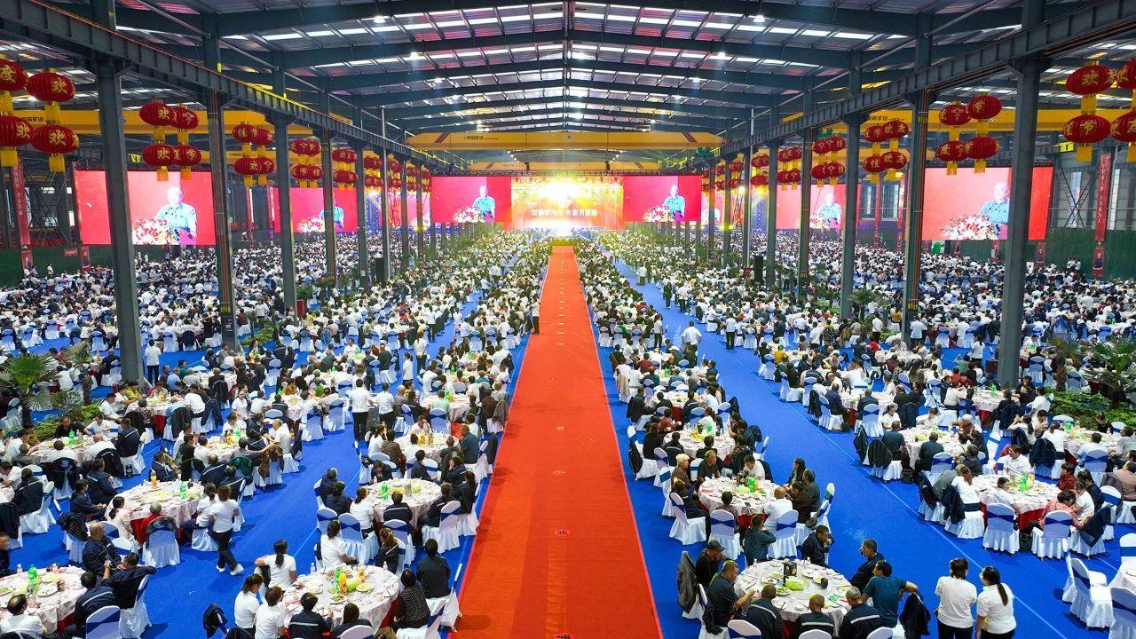 每年中秋节,他都要举办中秋晚会,邀请全公司的员工一起吃饭庆祝,还把员工的家人接到宴会现场。