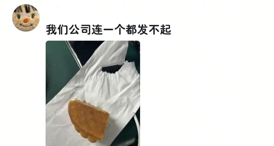 更有甚者,散装月饼都没有,买几块月饼让行政切成小块块,扎上牙签放在茶水间,让员工自取。