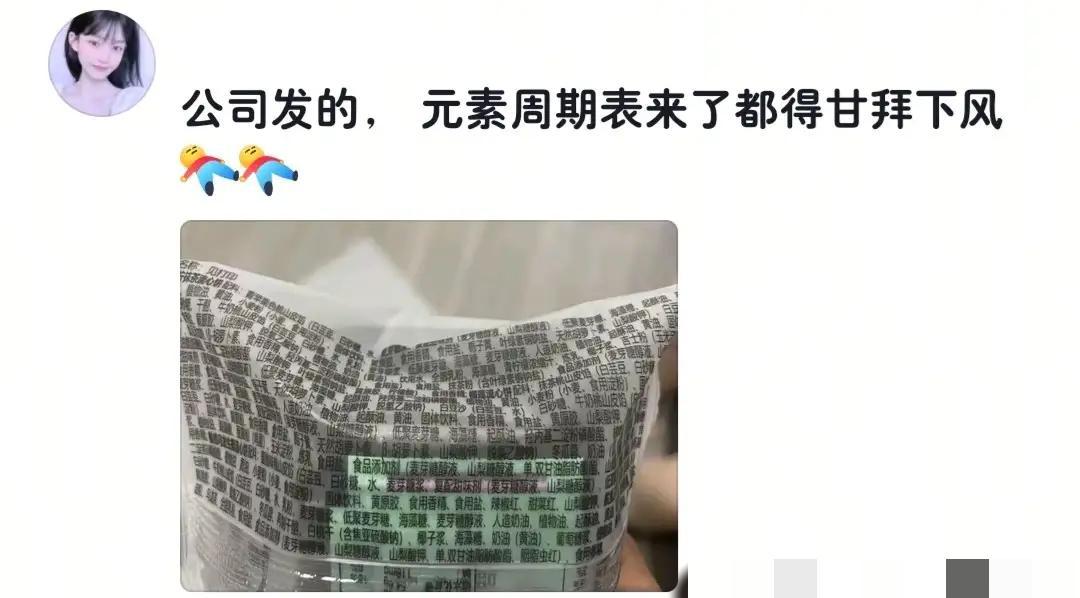 发的月饼,配料表堪称元素周期表,密密麻麻,看着让人头皮发麻。