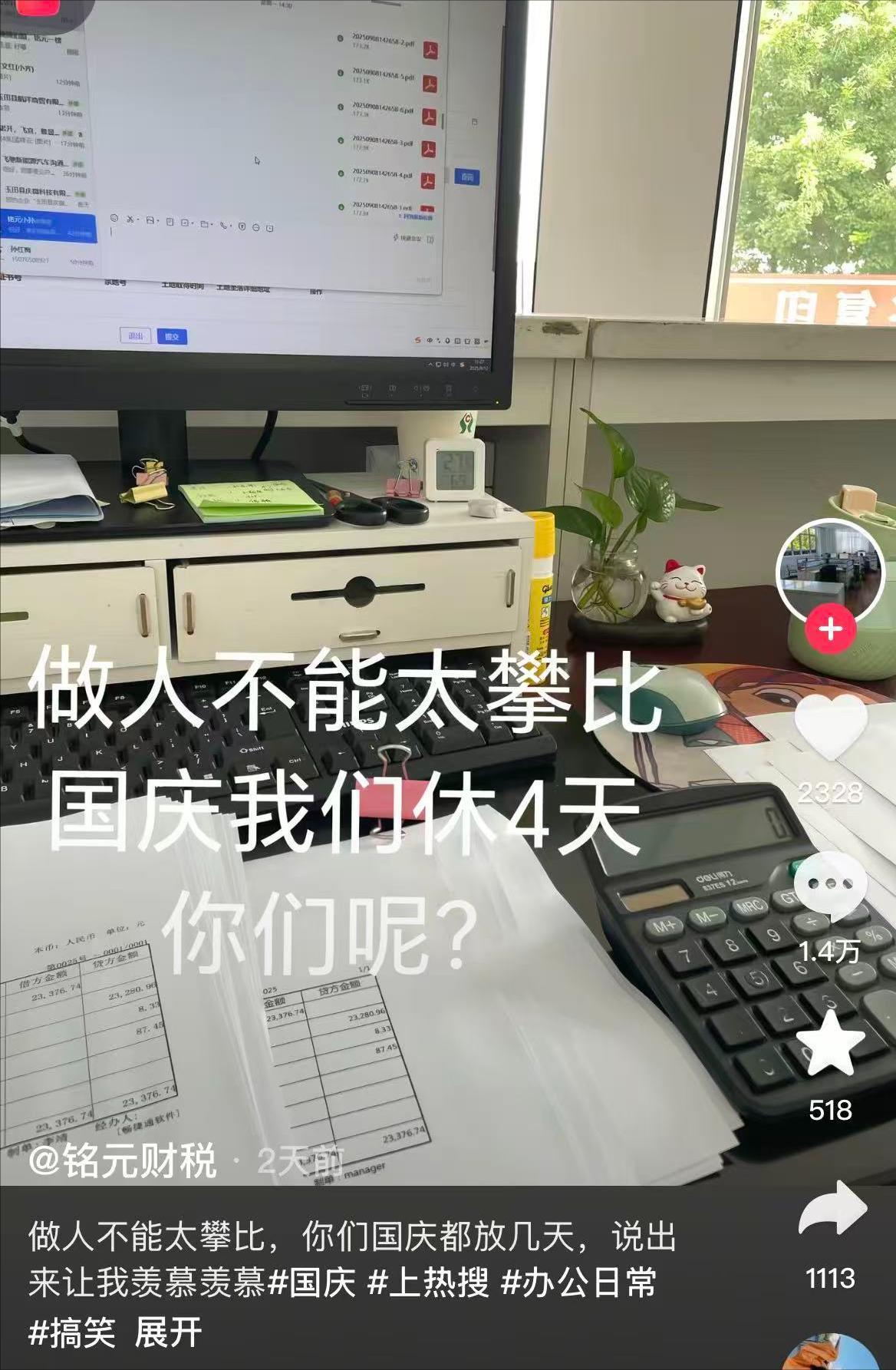 这次中秋国庆撞在一起,不少网友都在社交平台玩梗,晒自己的休息时间。