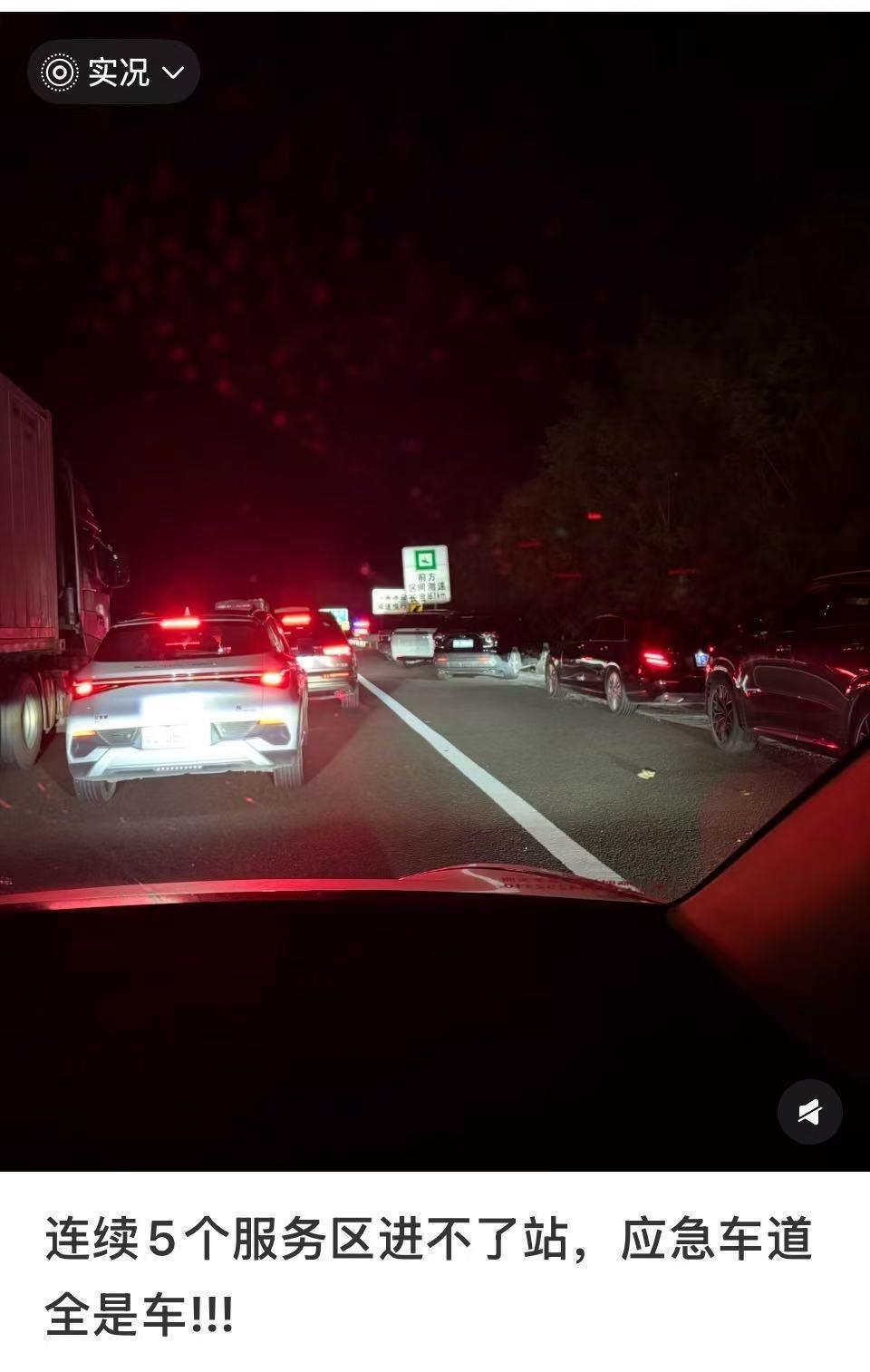 湖南段的高速成为网友吐槽的“重灾区”,多个服务区排起长队,车辆难以进入。7日上午,一位IP地址显示在湖南的网友提到,自己连续尝试进入5个服务区均未成功,甚至应急车道上也停满了车辆,场面十分混乱。