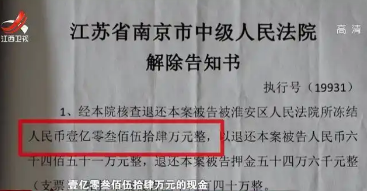 黎先生翻出廖某发给自己的法律文书,上边确确实实地写到南京中级人民法院的解除告知书,上边清清楚楚写着廖某父母公司被法院冻结了1亿元资产。