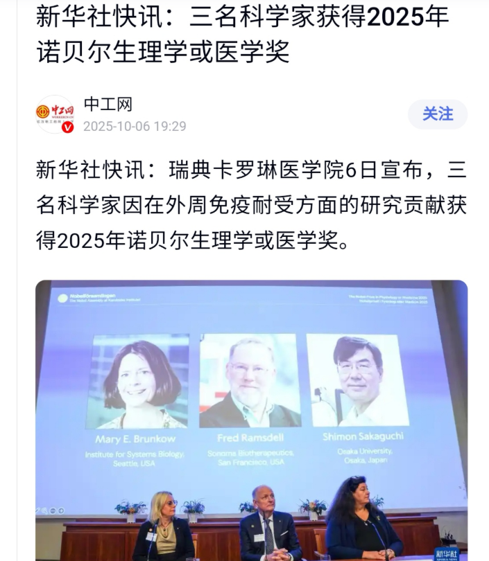 根据熊丙奇披露的报道截图,在宣布美国科学家玛丽·E·布伦科、弗雷德·拉姆斯德尔与日本科学家坂口志文获奖的快讯中,正文仅以"三名科学家获奖"一笔带过,未提及任何获奖者姓名及国籍信息。与之形成鲜明对比的是,2024年同类报道均完整标注了获奖者国籍及姓名,这种反常处理引发学界质疑。