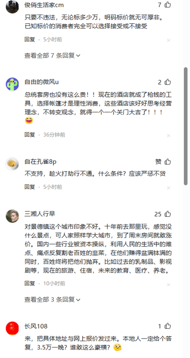 2025年初,景德镇多家酒店曾签署《景德镇市旅游住宿行业价格诚信承诺书》,明确承诺“500元以下房型在国庆期间价格上涨不超过100%”。