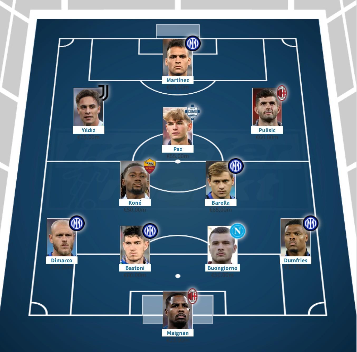 北京时间10月7日,随着德转(德国转会市场)更新了意甲球员的最新身价,一份备受瞩目的意甲最贵11人阵容名单也随之出炉。在这份星光熠熠的名单中,国际米兰成为了最大赢家,共有5名球员入选,而AC米兰、尤文图斯等球队也有球员上榜。