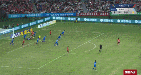 下半场,南通队继续发力,很快就杀死了比赛的悬念。第54分钟,南通队左路挑传,队友送出精准传中,程鑫在禁区里接应抢点,推射得手,将比分扩大为3-0!南通队几乎提前锁定了胜利。