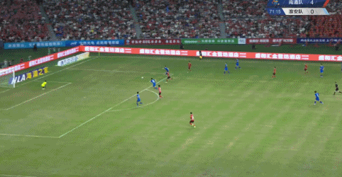 第64分钟,南通队再次打出无解的进攻。程鑫在禁区外轰出世界波,球打在门柱上弹回。队友迅速将球踢到禁区里,金成民精彩倒勾破门,比分变为4-0。