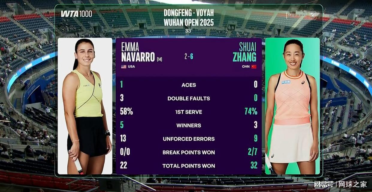 首盘比赛,中国老将迅速进入状态,以6比2轻松拿下,将纳瓦罗逼入了绝境。