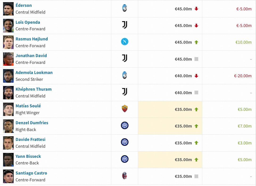除了伊尔迪兹之外,科莫队的尼科-帕斯也是本次身价更新中的上涨佼佼者,他的身价上涨了2000万欧。然而,有涨就有跌,亚特兰大前锋卢克曼的身价则下跌了2000万欧,成为了本次更新中身价下跌最多的球员。