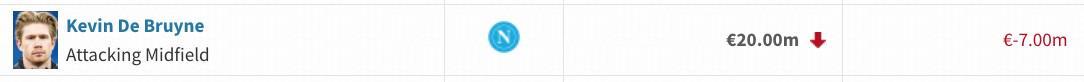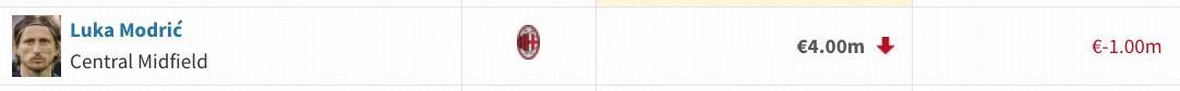值得一提的是,今夏登陆意甲的两位中场大师德布劳内和莫德里奇的身价也有所下跌。德布劳内的身价下跌至2000万欧,而莫德里奇的身价则下跌至了400万欧。