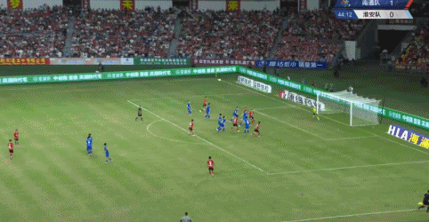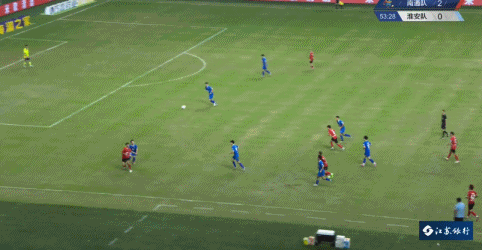 第20分钟,尹韩龙轰出世界波,南通队1-0领先淮安队
