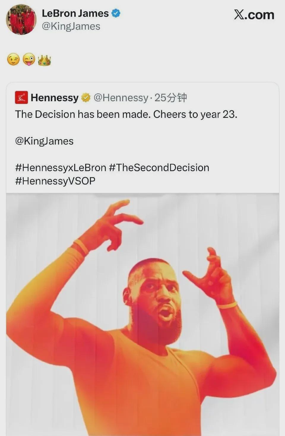 近日,篮球巨星詹姆斯正式宣布了一个令人意外的决定——他将与著名白兰地品牌轩尼诗展开合作,代言该品牌。