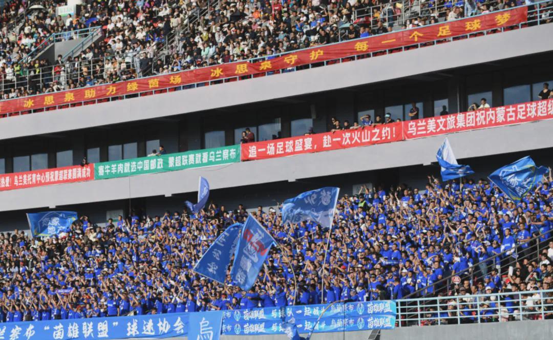 比赛哨响前半小时,体育场内就已经响起了整齐划一的助威声浪。球迷们挥舞着手中的旗帜,高举着“乌兰察布,战斗到底”的醒目标语,那声浪仿佛要震动整个全场。身着蓝色球衣的球迷李依依紧紧攥着加油棒,在人潮的欢呼声中大声喊道:“咱们乌兰察布的球迷太给力了!必须为球队吼到底!”