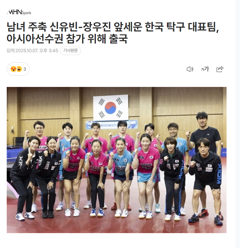北京时间10月7日,据韩国媒体《MHN体育》报道,韩国乒乓球队(男团/女团)已全员抵达印度奥里萨邦首府布巴内斯瓦尔,开启为期数日的赛前适应性训练,并将于10月11日正式亮相2025年乒乓球团体亚锦赛赛场。此次出征阵容经过严格选拔,成为韩乒备战的重要看点。