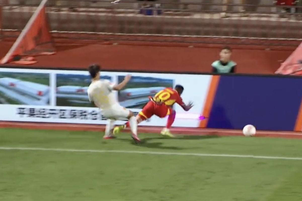 判例四:中甲联赛第25轮,广西平果对阵重庆铜梁龙,比赛进行到第60分钟时,广西平果17号队员在对方罚球区内与对方队员争抢球后倒地,裁判员未判罚犯规,随后VAR与裁判员沟通后也未介入。