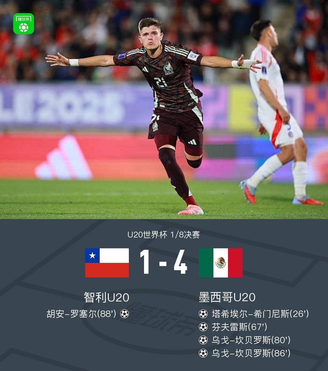 尽管智利U20在比赛尾声阶段由劳塔罗-米利安助攻胡安-罗塞尔扳回一城,但无奈比分差距过大,最终全场比赛结束,墨西哥U20以4-1的比分大胜智利U20,成功晋级下一轮。