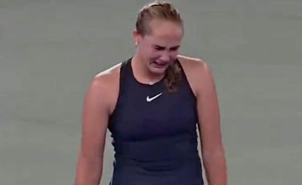 昨晚的比赛,面对37岁的老将西格蒙德,安德烈耶娃从一开始就显得力不从心。首盘比赛,她就险些被对手翻盘,尽管最终通过抢七艰难胜出,但她的情绪已经明显低落,多次在场上展现出即将落泪的脆弱。