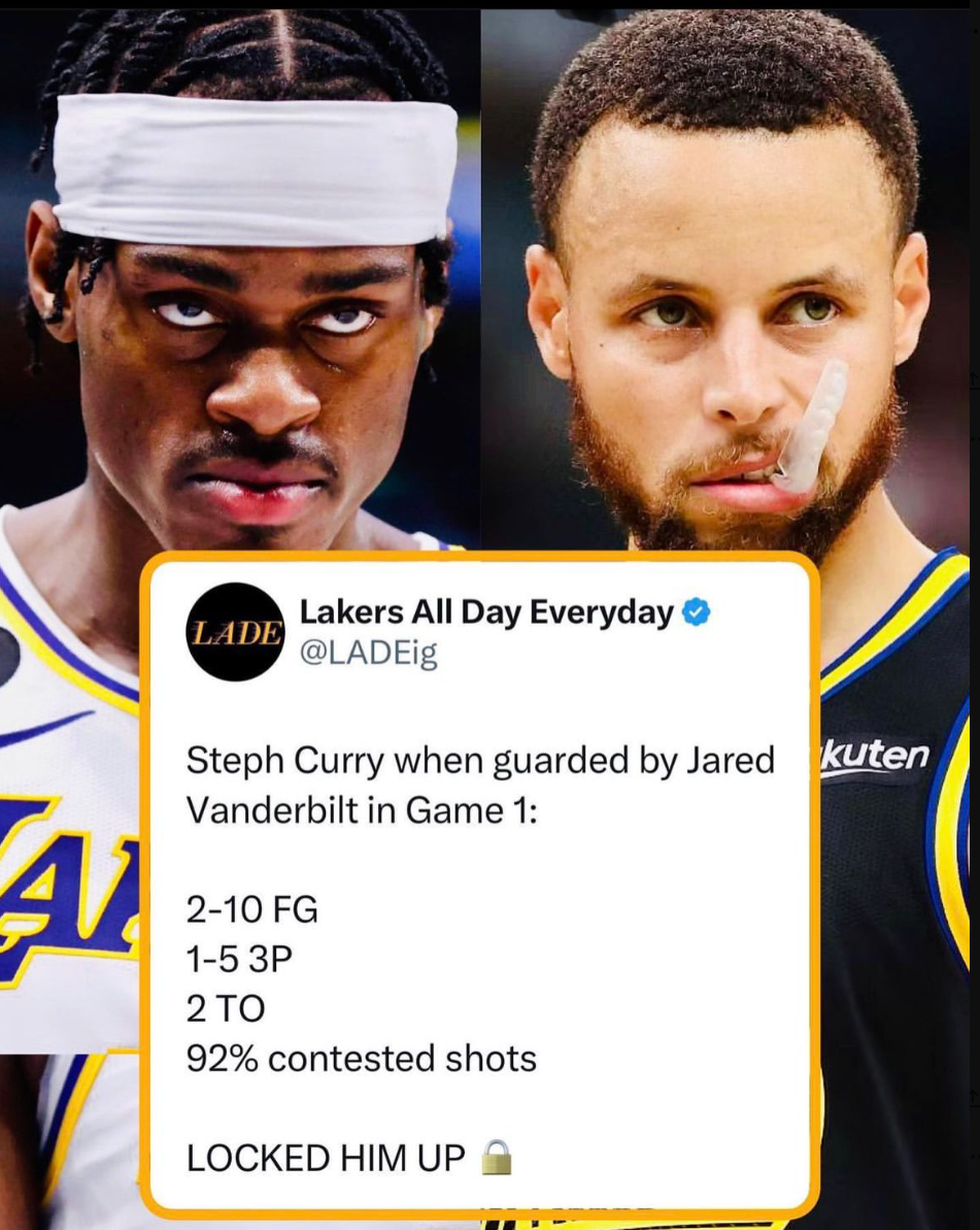 湖媒还晒出了2023年5月2日湖人VS勇士的西部半决赛G1中,范德比尔特身体健康时防守库里的数据。他防守库里时,库里10投2中,三分5投1中,还出现2次失误,92%的出手都极度困难。这充分展示了范德比尔特在防守端的强大实力。