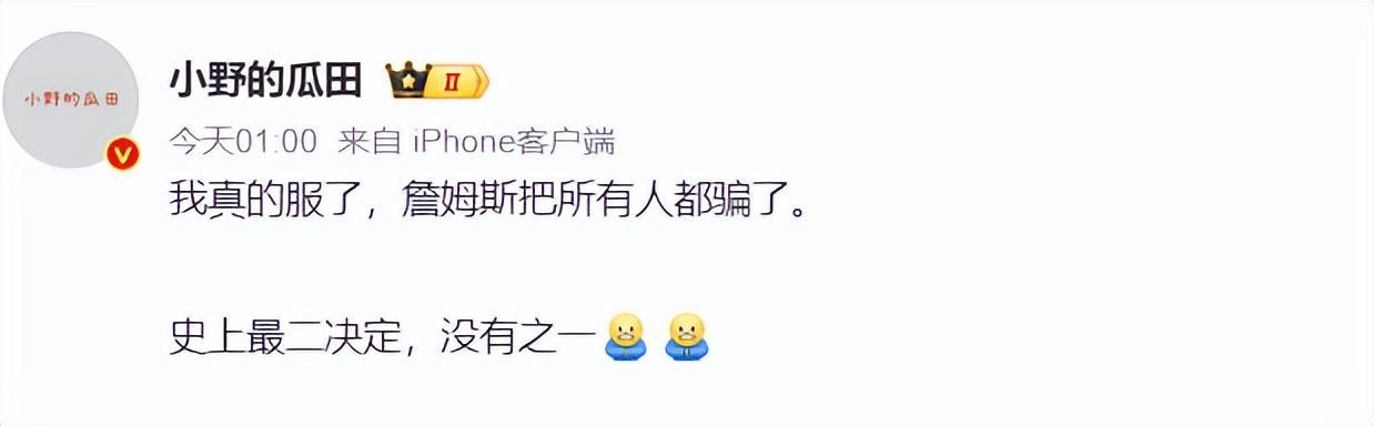 1. “真的服了,勒布朗骗了所有人,史上最2的决定没有之一。”