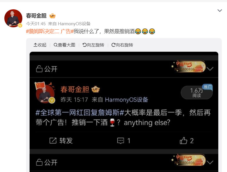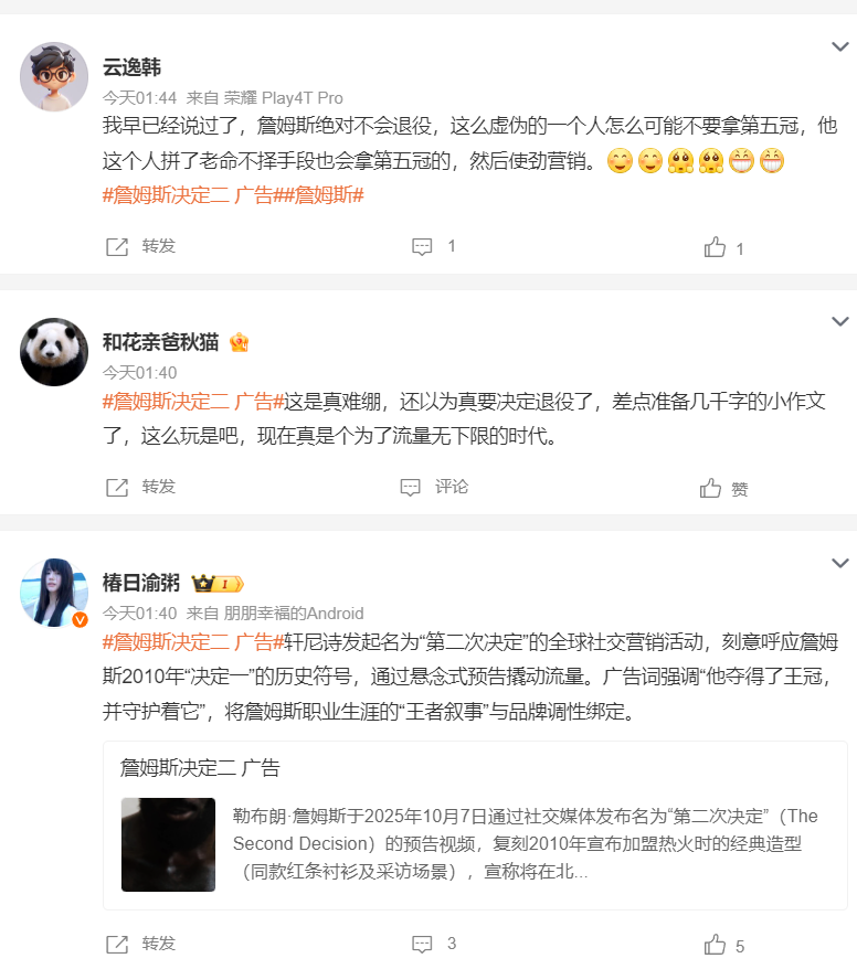 6. “不是退役就挺好的,老詹是懂流量的。”