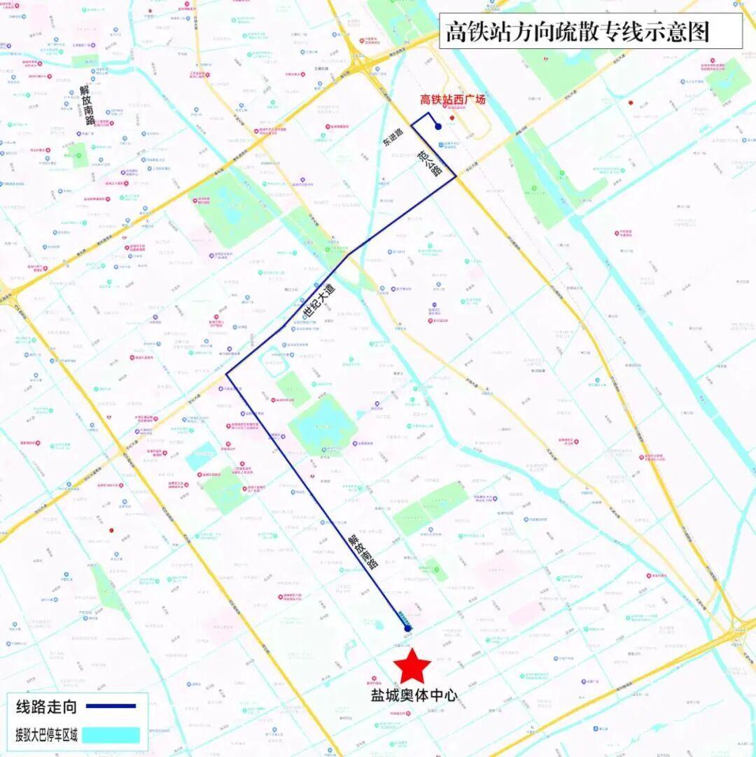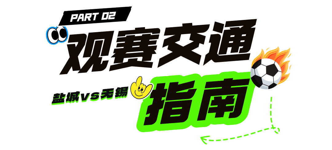 球迷可在盐城高铁站西广场乘坐51路、38路、1018路、H11线、H21线,在中南世纪城、海阔路民富路口或科教路蓝海路口等站点下车,步行至盐城奥体中心体育场。