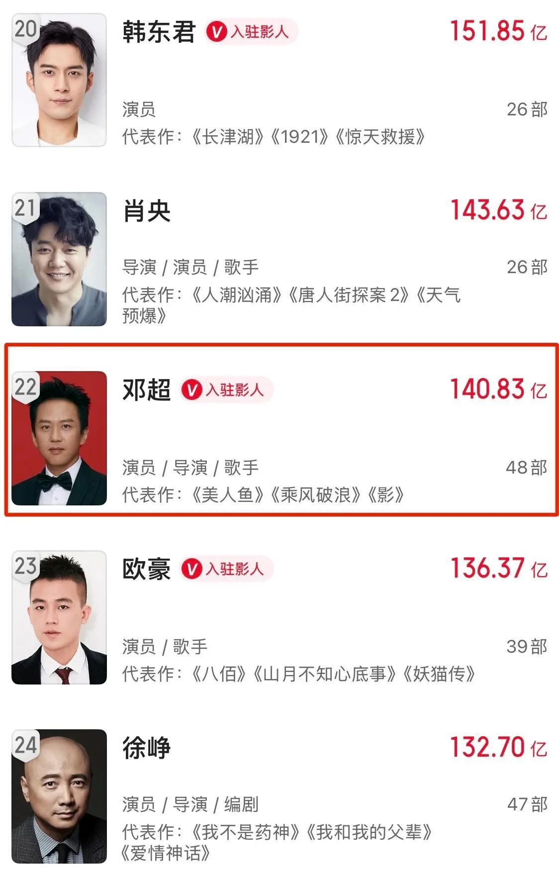 奈何这些年痴于做导演,走了弯路,被人接连超越,起初票房排位榜上,还是排头兵,再回首,已经掉到二十名开外。
