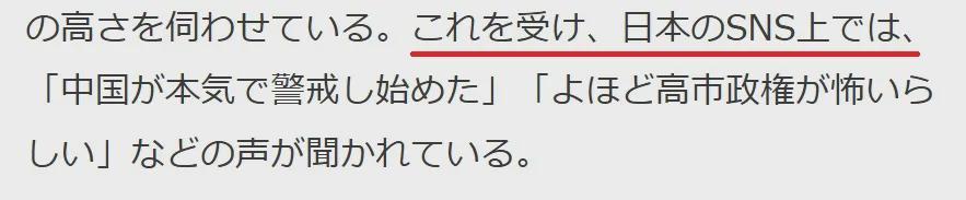 值得注意的是,《产经新闻》在此报道中采用了日媒惯用的模糊话术。中国惧怕高市早苗这一惊天结论,其消息源、是否经过求证等关键信息,全部被推到了‘日网有舆论声音’的身上。而标题则巧妙地省略了主语,制造出一种是中国态度、中国网民热议‘中国怕高市’的错觉。