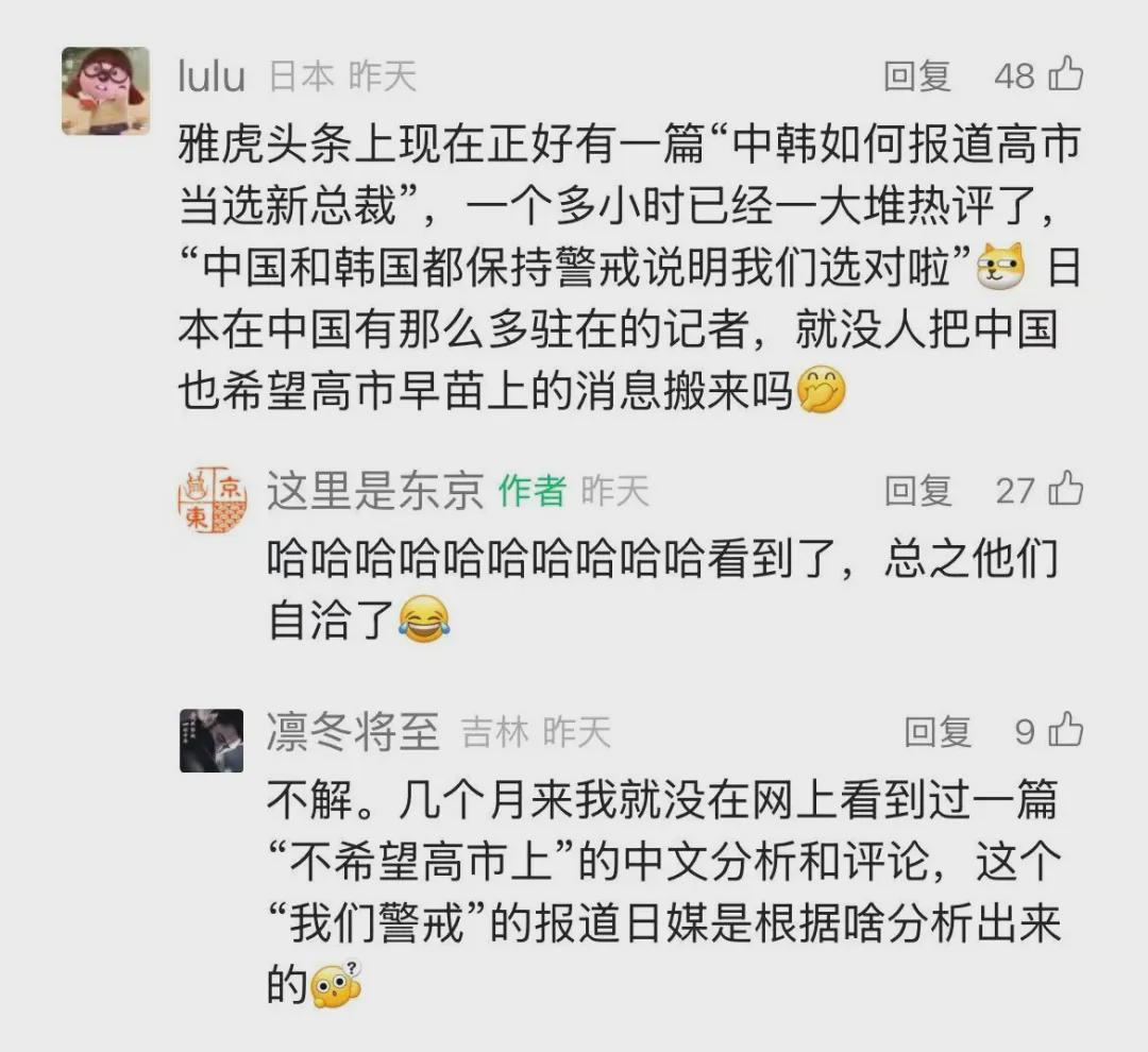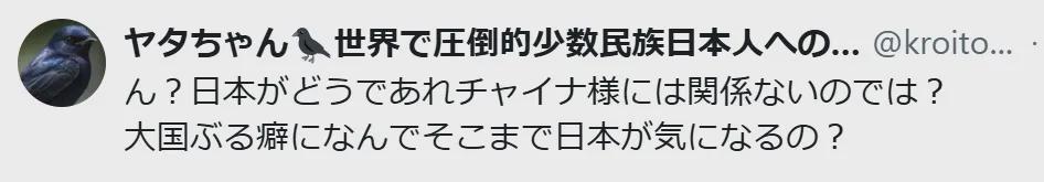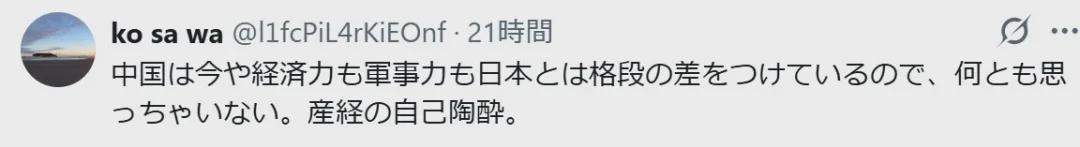 换句话说,日本主流媒体《产经新闻》为了所谓的‘精神胜利’,不惜自导自演了一出戏,将‘日网舆论’伪装成‘中网舆论’,再转销回日本网络。日本网民在集体高潮之后,又被《产经新闻》的后续报道撩拨得更加兴奋,仿佛中国真的因此而惧怕。