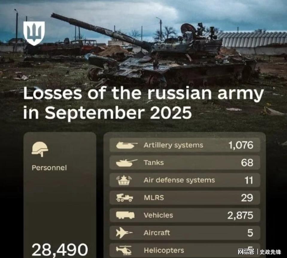 据乌克兰特别节目“我要活下去”及“简氏防务”网站公布的数据,2025年1~8月份(9月为28490人),俄军总计伤亡、失踪与被俘281550人,其中86744人当场死亡,158525人重伤或残疾,33966人失踪,2311人被俘。其中,波克罗夫斯克方向俄第2、第41、第51集团军自1月份来共计伤亡8万余人,部队基本打光,80%以上军事人员属于补充人员。库尔斯克及苏梅边境的俄军伞兵和海军陆战部队伤亡4.2万人,第1近卫坦克集团军伤亡21000人,仅被誉为精锐的90坦克师在向第聂伯罗彼得罗夫斯克州推进中就损失7000人。