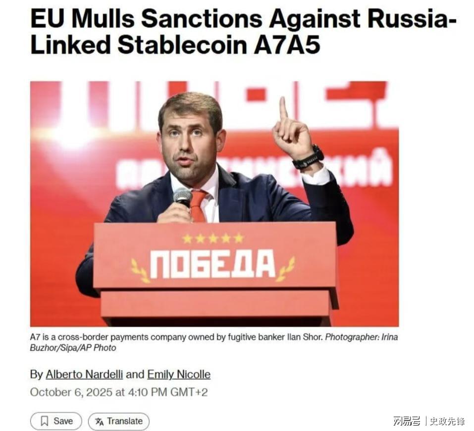 彭博社10月6日报道,欧盟计划对俄罗斯用于跨境支付的主要加密货币“A7A5”实施制裁。该币由摩尔多瓦亲俄政客伊兰·肖尔控制的支付公司“A7”开发,已进行了价值高达680亿美元的交易。欧盟认定A7A5已成为莫斯科规避西方金融制裁的主要洗钱平台。