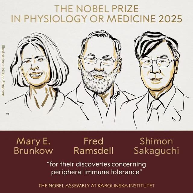 2025年10月6日,玛丽·布伦科(Mary.E.Brunkow)、弗雷德·拉姆斯德尔(Fred Ramsdell)和坂口志文(Shimon Sakaguchi)三位科学家,因在防止免疫系统伤害身体的外周免疫耐受方面的突破性发现,共同荣获了2025年诺贝尔生理学或医学奖。该奖项奖金高达1100万瑞典克朗(约合人民币834万元),由三人共享,这无疑是对他们科研成果的极高认可。