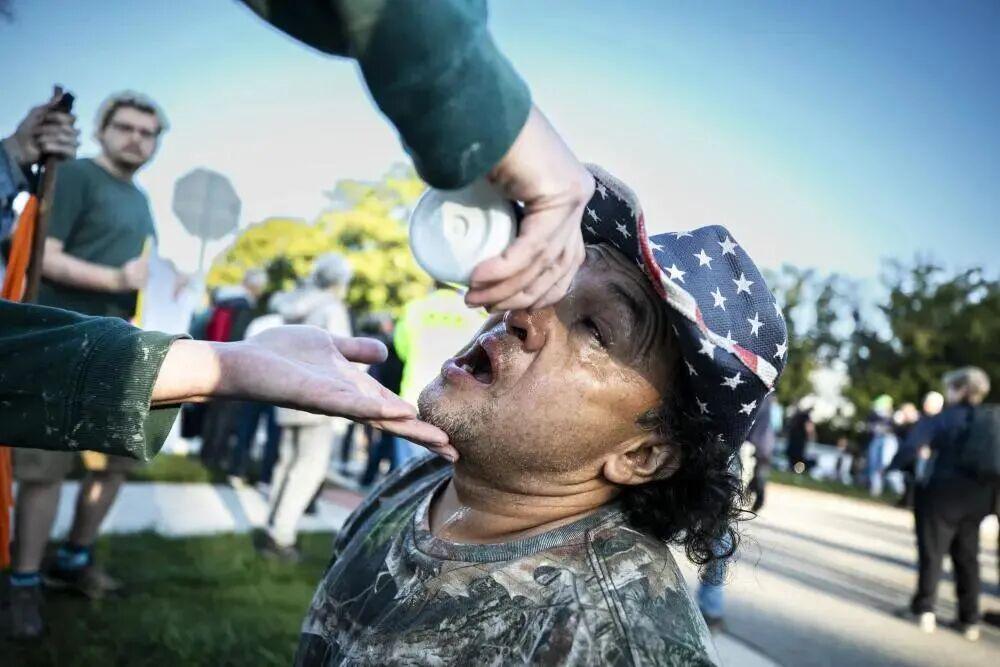 9月26日,在位于美国芝加哥西郊布罗德维尤市的移民与海关执法局办事机构外,抗议者在冲突中将执法人员发射的催泪弹瓶扔回,场面一度失控。新华社援引美国有线电视新闻网的报道称,“几天前,执法人员深夜突击搜查一栋公寓楼,逮捕37名没有身份证明的人和一些美国公民”。