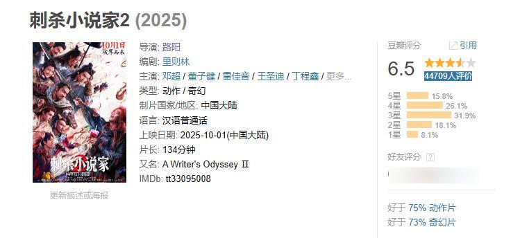 《刺2》的某瓣评分只有6.5分,刚刚过及格线。