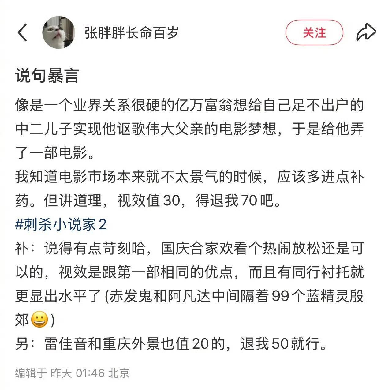 国庆档看完《刺杀小说家2》,走出影院的我只想仰天长啸——