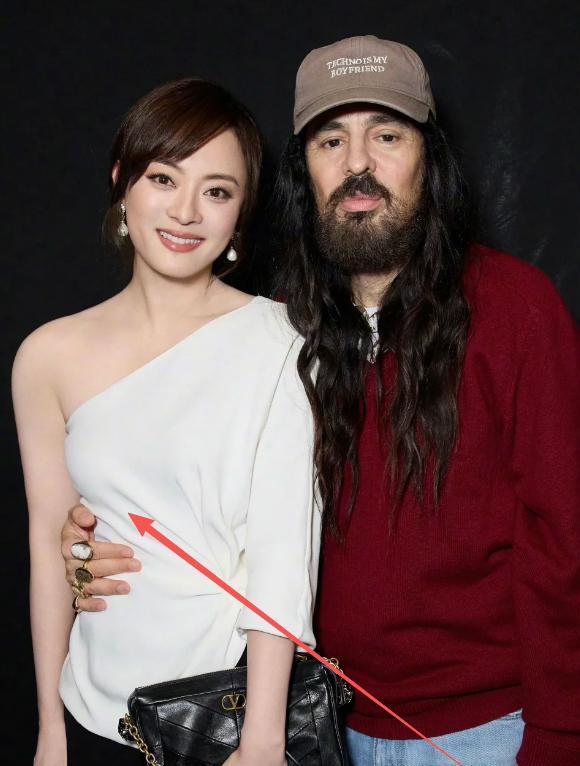 和华伦天奴的创意总监一起合照,还是逃不过被揩油的行为。