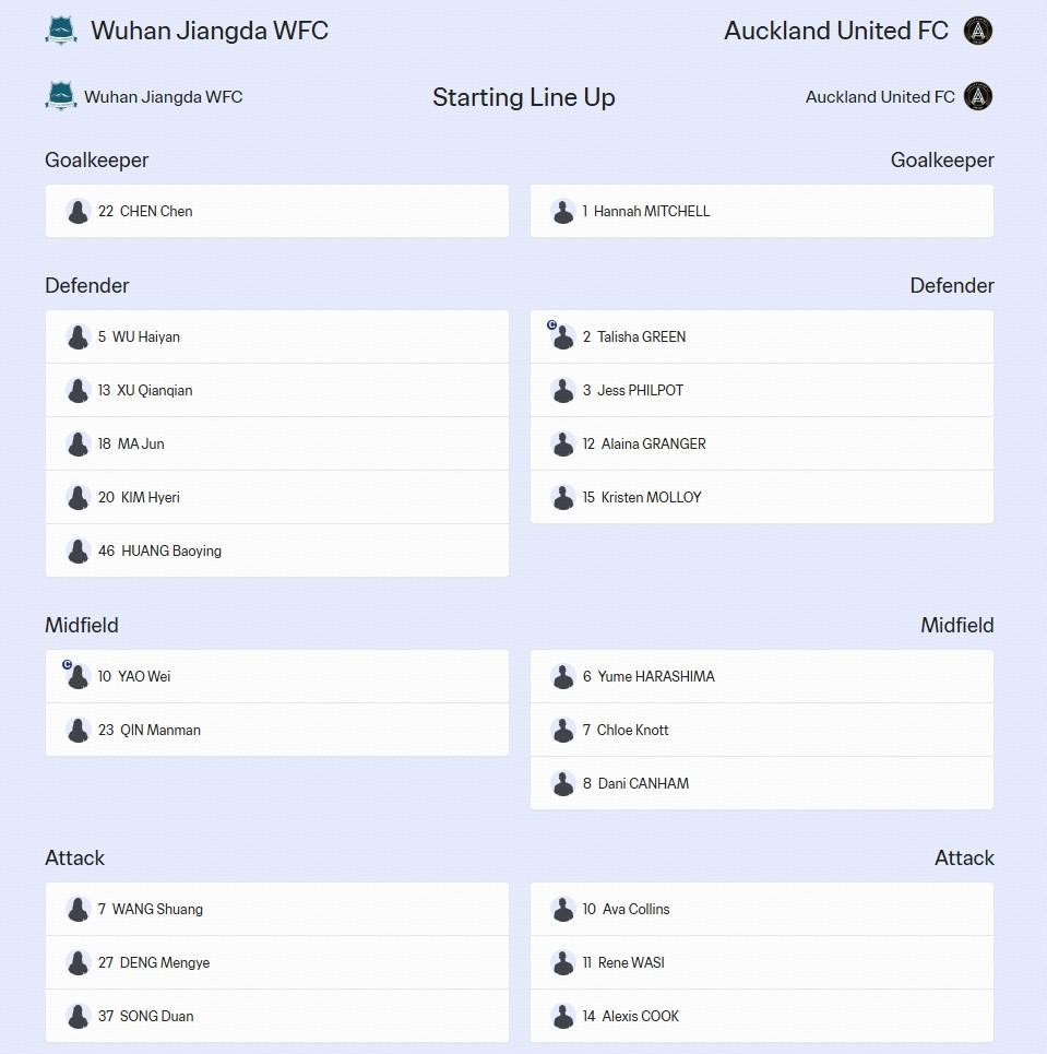 赛前,双方球队的首发阵容已经公布,其中武汉车谷江大女足的阵容尤为引人注目。王霜、吴海燕、姚伟等国内女足的佼佼者悉数在列,她们将携手为球队出战,力争在主场取得开门红。