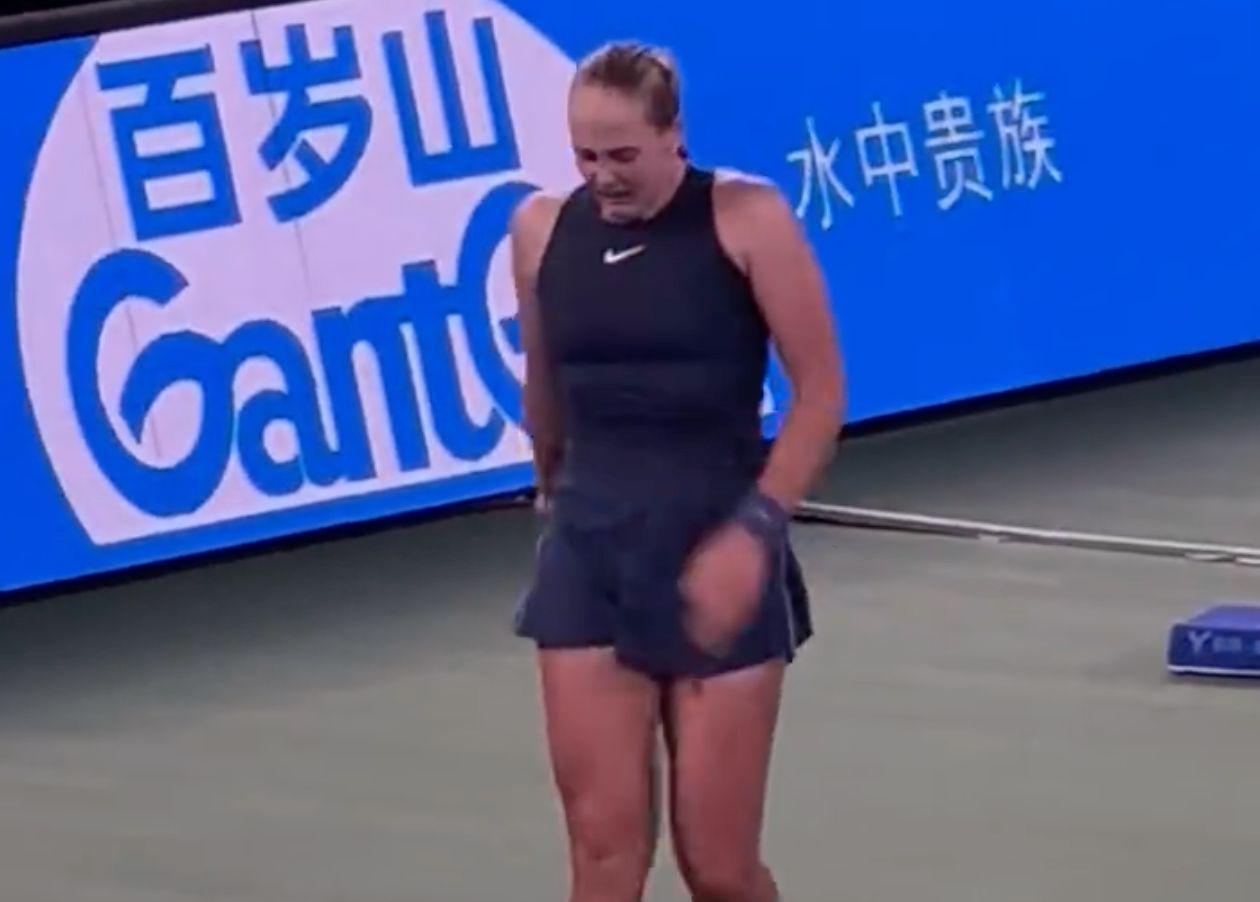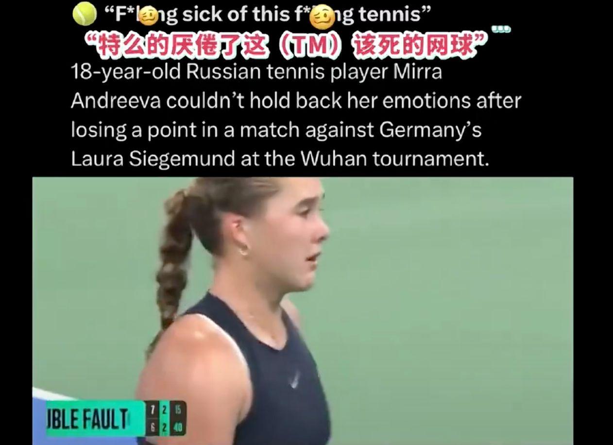 然而,进入第二盘后,局势急转直下。在前4局打成2-2平后,第5局成为转折点。安德烈耶娃在发球局中,局分15-30时出现双误,直接送给对手一分。这一失误让她情绪瞬间失控,愤怒地喊道:“我XX真是受够了这XX该死的网球。”