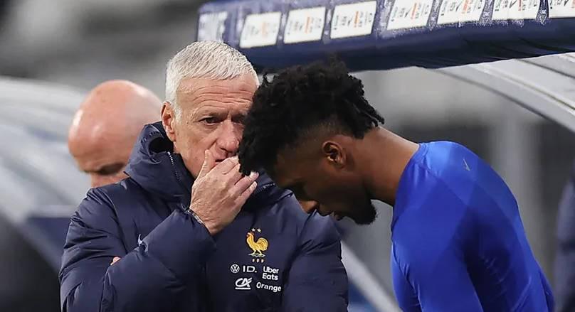 根据RMC Sports的最新报道,法国国家队主帅德尚对近期加入球队的金斯利·科曼进行了一番轻松的调侃,而科曼也以幽默的方式作出了回应,两人的互动引发了广泛关注。
