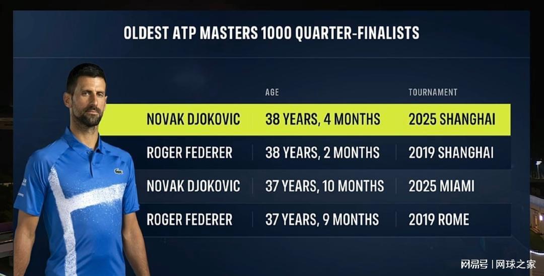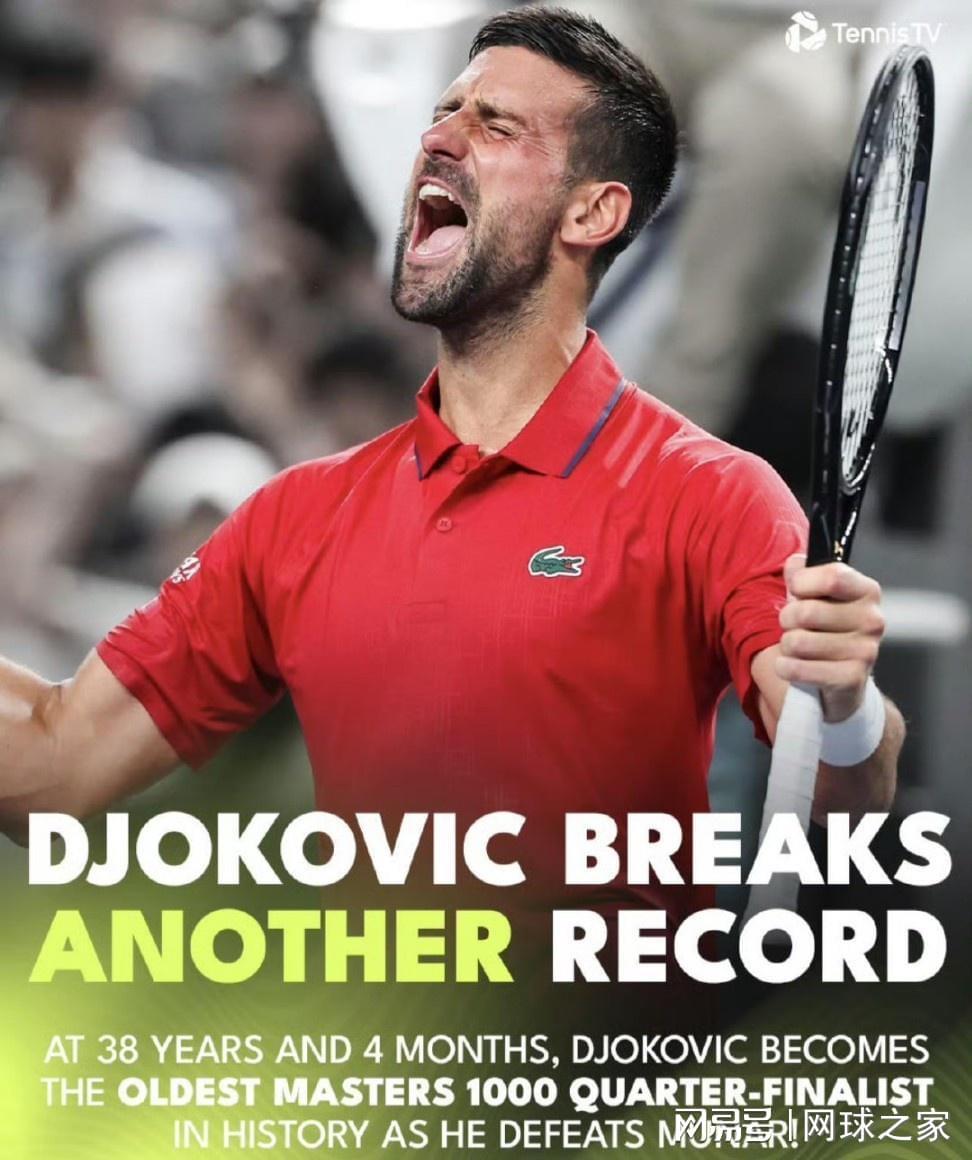 此外,这场被球迷和网友称为惨胜的对决,也让德约科维奇以38岁133天的年龄,成为了在大师赛闯入八强最年长的球员,一举超过了瑞士天王费德勒。费德勒此前保持这项纪录的年龄是38岁60天,现在被德约科维奇将之作古了。