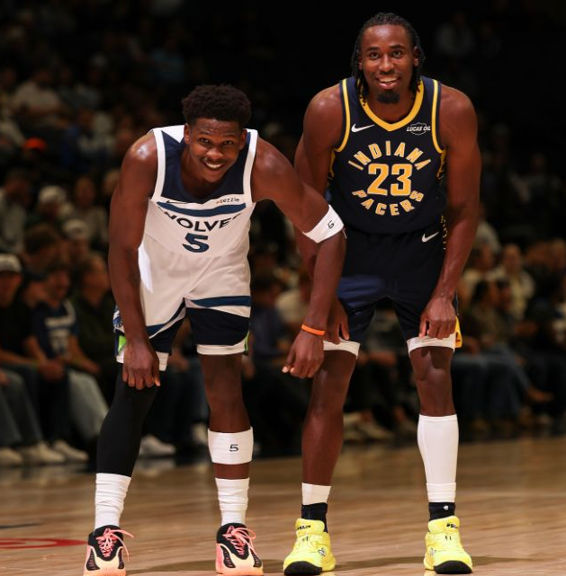 本场比赛是森林狼的第二场季前赛。此前,在爱德华兹、兰德尔两大核心缺席的情况下,他们仍以126-116击败掘金,新援海兰德8投5中砍下18分,朱赞16分、新秀贝兰热14分的表现,展现了替补席的深度。本场,森林狼三大核心全部出战,可见球队教练组也想借助步行者检验首发阵容的适配性。森林狼球迷更是期待着安东尼・爱德华兹用一场惊艳表现,宣告休赛期苦练的成果。毕竟这个夏天,关于他闭关钻研乔丹与科比绝技的消息传遍联盟——从逐帧分析《最后一舞》的背身脚步,到复刻黑曼巴的后仰跳投,每天2小时的专项特训让明尼苏达看到了突破西决魔咒的希望。