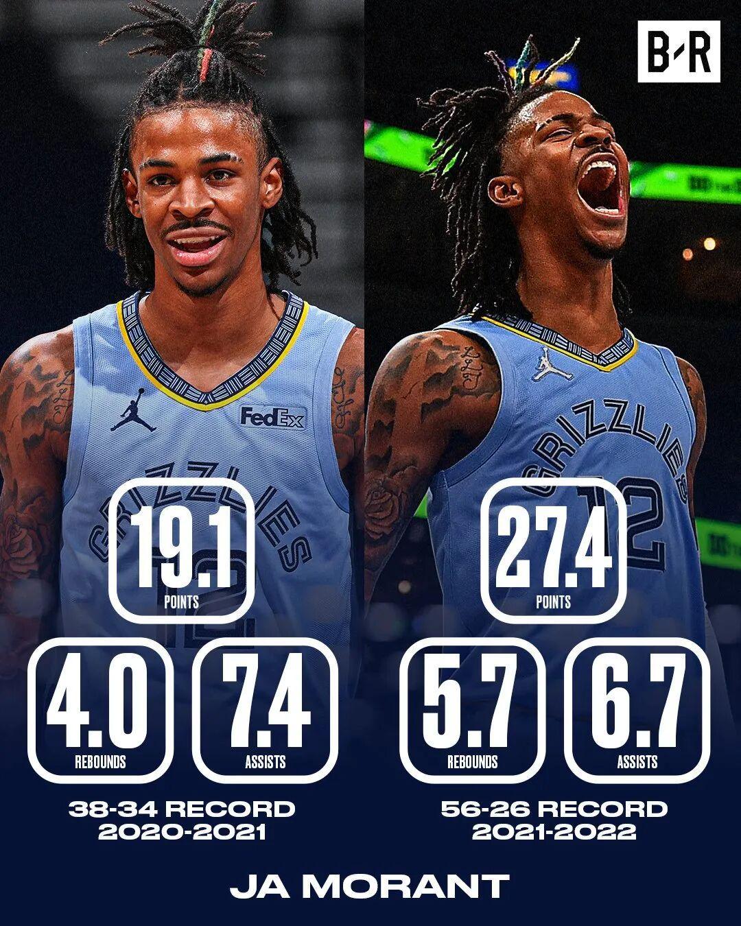 除了出勤率问题,莫兰特在出战的比赛中的表现也未能完全满足球迷和媒体的期待。尽管在2021-22赛季,他凭借出色的个人表现和球队战绩(56胜26负,前一年仅38胜34负)当选了进步最快球员,并入选了全明星和最佳阵容二阵,但随后的赛季中,他的表现却出现了波动。