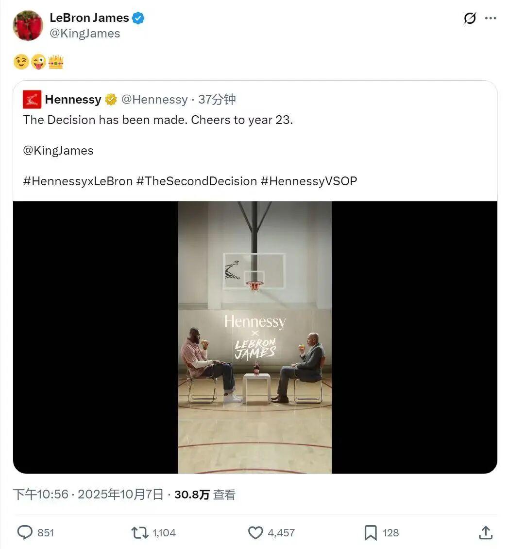 昨天,老詹突然在社媒发布一条预告视频,穿着与那年决定一相同的衣服会面主持人,并打上了决定中的决定——决定二的标签。这一举动让外界媒体纷纷猜测,他是不是要退役了。没想到居然是一场营销,令舆论大跌眼镜。