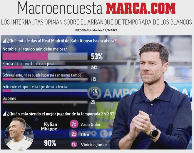 雷速体育10月8日讯,今日《马卡报》进行了一项球迷民意调查,针对皇马在新帅上任后的新赛季表现进行了全面评价。此次调查涵盖了主帅表现、最佳球员、最佳新援、左翼最佳、中场选择、巴尔韦德最佳位置以及球队争冠可能性等多个方面。