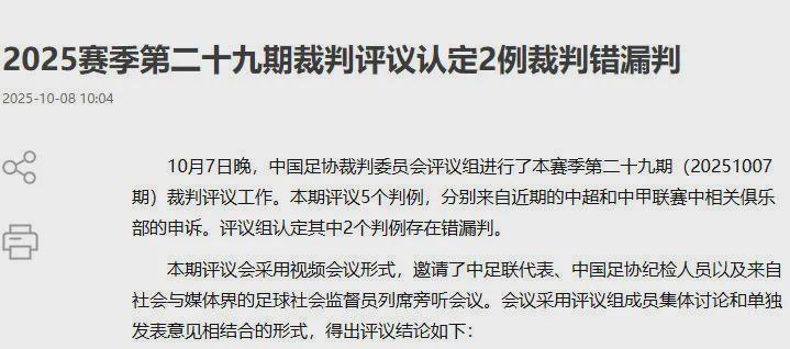 据中国足协官网介绍,本期评议会采用视频会议形式进行,邀请了中足联代表、中国足协纪检人员以及来自社会与媒体界的足球社会监督员列席旁听会议。会议采用评议组成员集体讨论和单独发表意见相结合的形式,确保评议的公正性和准确性。