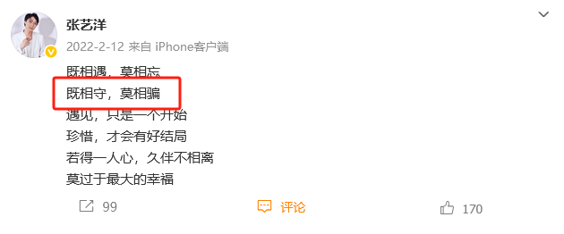 有网友评论称,张艺洋是在发完最后一条微博后,杀害了自己的小女友。记者注意到,张艺洋的最后一条微博写着“既相遇,莫相忘,既相守,莫相骗”。这条微博的发布时间是2022年1月12日,与法院布告中提到的案发时间2月26日相差不到半个月。此后,张艺洋的微博账号未再更新。