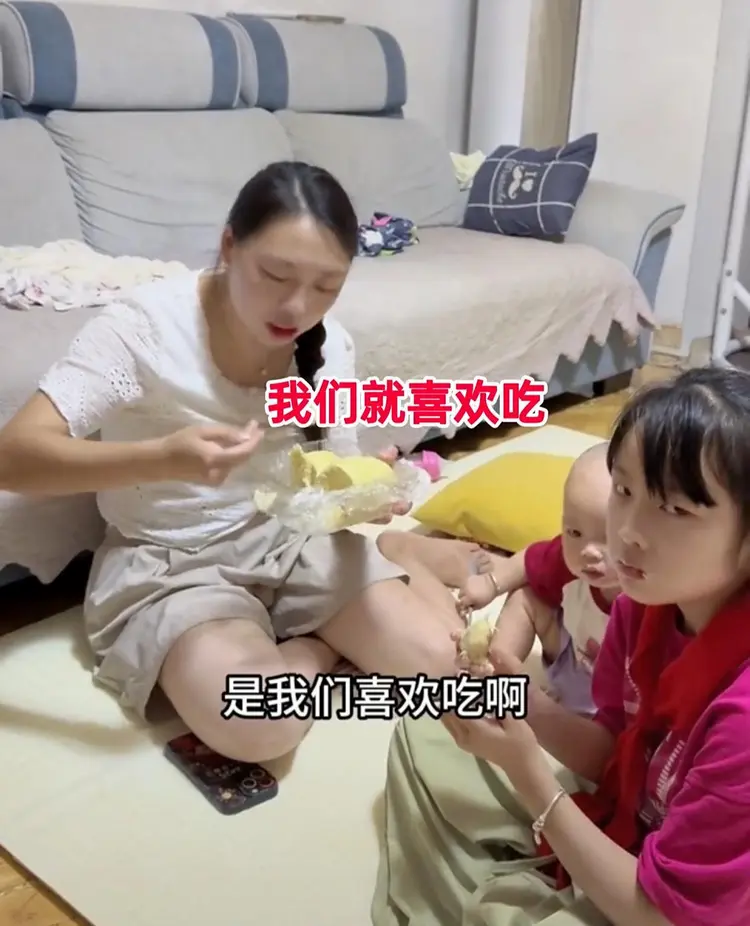 视频画面中,女子手中拿着一大盒榴莲,和孩子们吃得津津有味。面对丈夫的质问,她只是淡淡地敷衍道:“不知道,记不清了!”